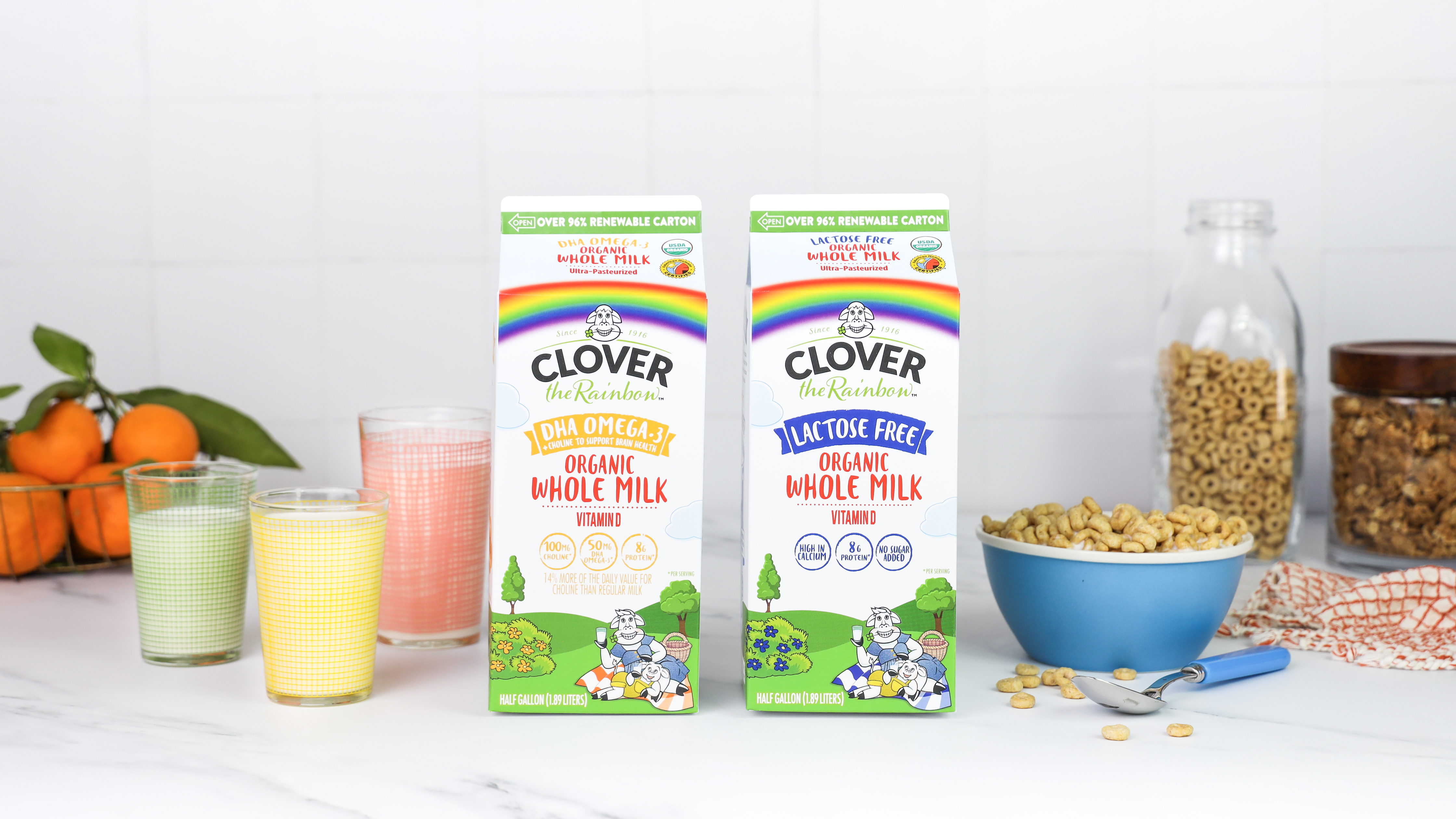 PETALUMA, Calif.--(BUSINESS WIRE)--Clover Sonoma, a third-generation family-owned and operated dairy and Certified B Corporation®, today announced the addition of two new organic plus milks to its Clover the Rainbow line for kids – Lactose Free Organic Whole Milk and DHA Omega-3 with Choline Organic Whole Milk. Sourced from American Humane Certified, local Northern California family farms, these two new organic plus milks offer customized, whole nutrition for the entire family. These new easy-to-digest and Omega-3 boosted whole milks will help power kids' growing brains and bodies throughout the day. The milks are the second product and category launch in the Clover the Rainbow brand, which started in August 2021 with the introduction of organic yogurt smoothies with fruits and vegetables.