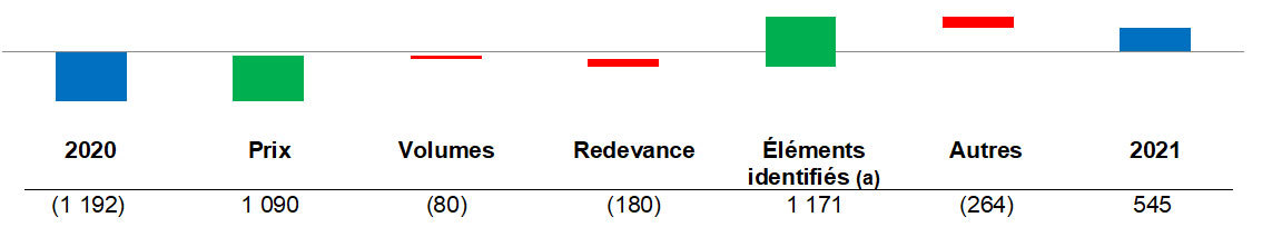 - Le bénéfice net a été de 813 millions de dollars, ou 1,18 dollar par action sur une base diluée, comparativement à une perte nette de 1 146 millions de dollars, ou 1,56 dollar par action au quatrième trimestre de 2020. Le bénéfice net hors les éléments identifiés¹ est de 813 millions de dollars au quatrième trimestre de 2021, en hausse par rapport aux 25 millions de dollars pour la même période en 2020.