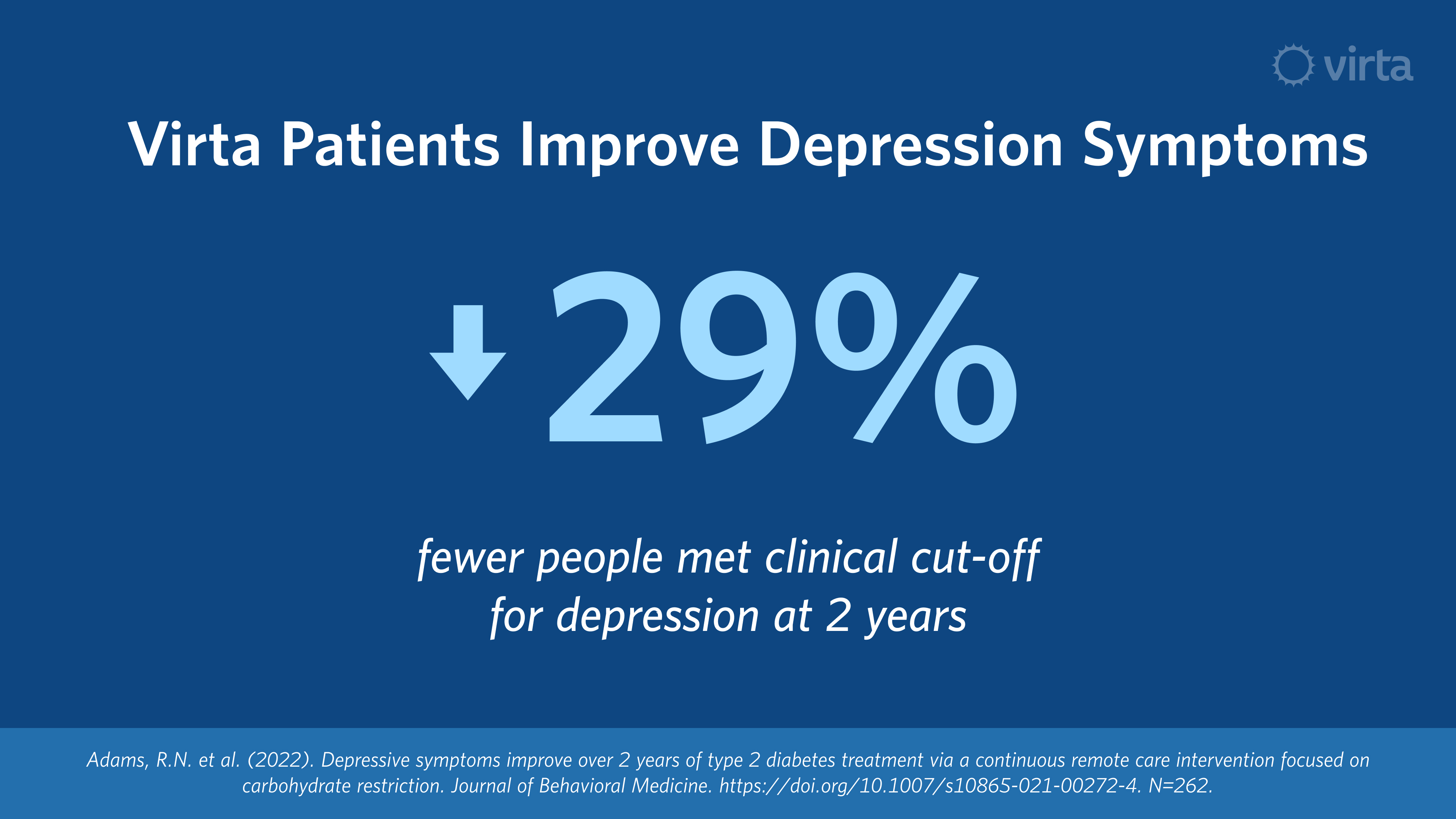 Patients Receiving Virta’s Diabetes Reversal Treatment See Sustained Reduction in Depressive Symptoms, New Research Shows