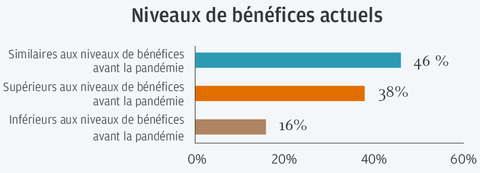 En ce qui concerne les niveaux de bénéfices actuels, 84 % des dirigeants déclarent que leurs bénéfices sont revenus ou ont dépassé les niveaux antérieurs à la pandémie, alors que 16 % n’en sont pas encore à ce stade.