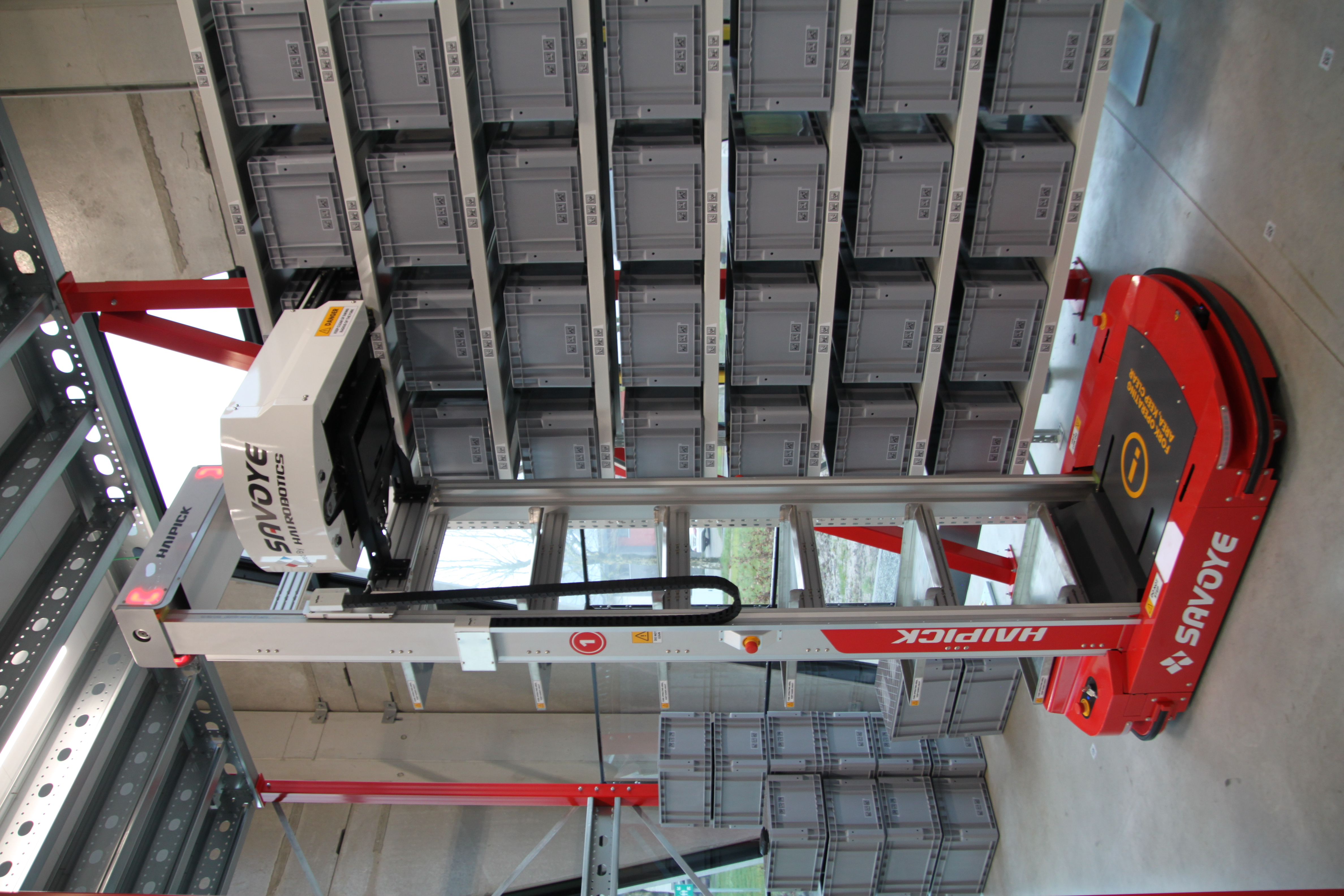 HAIPICKソリューションは柔軟性と拡張性に優れ、設置時間の短さが利点です。サボアによると、HAIPICKシステムは驚くほど短時間で設置できます。デモ機は1週間で設置が完了し、稼働しました。デモ機は高さ4.2メートルの棚2枚、1台のロボット、1台のピッキングステーションで構成されており、本格的な規模ではありませんが、その仕組みや利点を実地説明するには十分な大きさです。