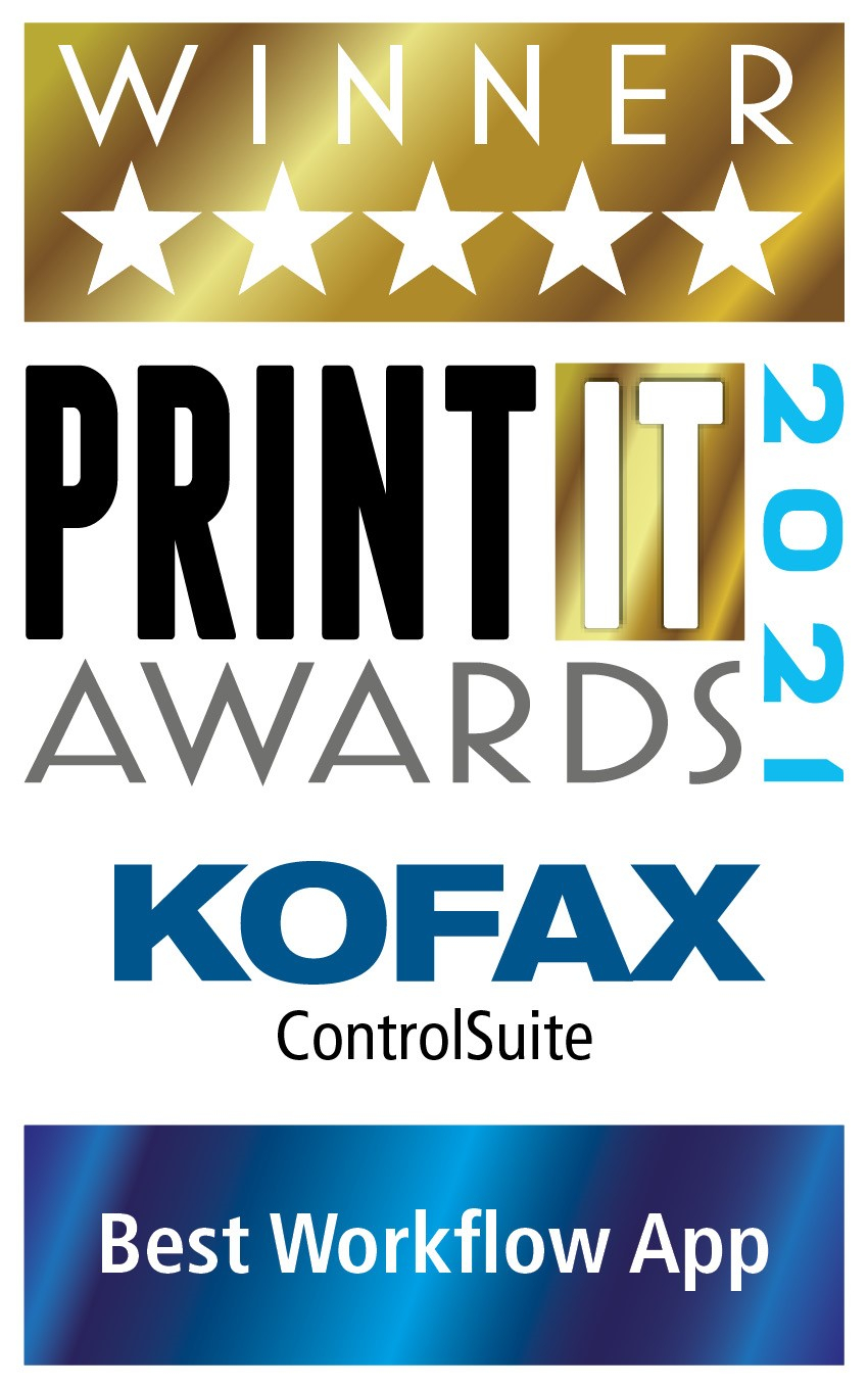 IRVINE, Calif.--(BUSINESS WIRE)--Kofax®, a leading supplier of intelligent automation software for digital workflow transformation, today announces Kofax ControlSuite™ was named Best Workflow App at the 2021 PrintIT Awards, the second annual event led by PrintIT Reseller magazine. This is the second year in a row Kofax has been honored at the PrintIT Awards, with ControlSuite winning for Best MFP Business App last year.
