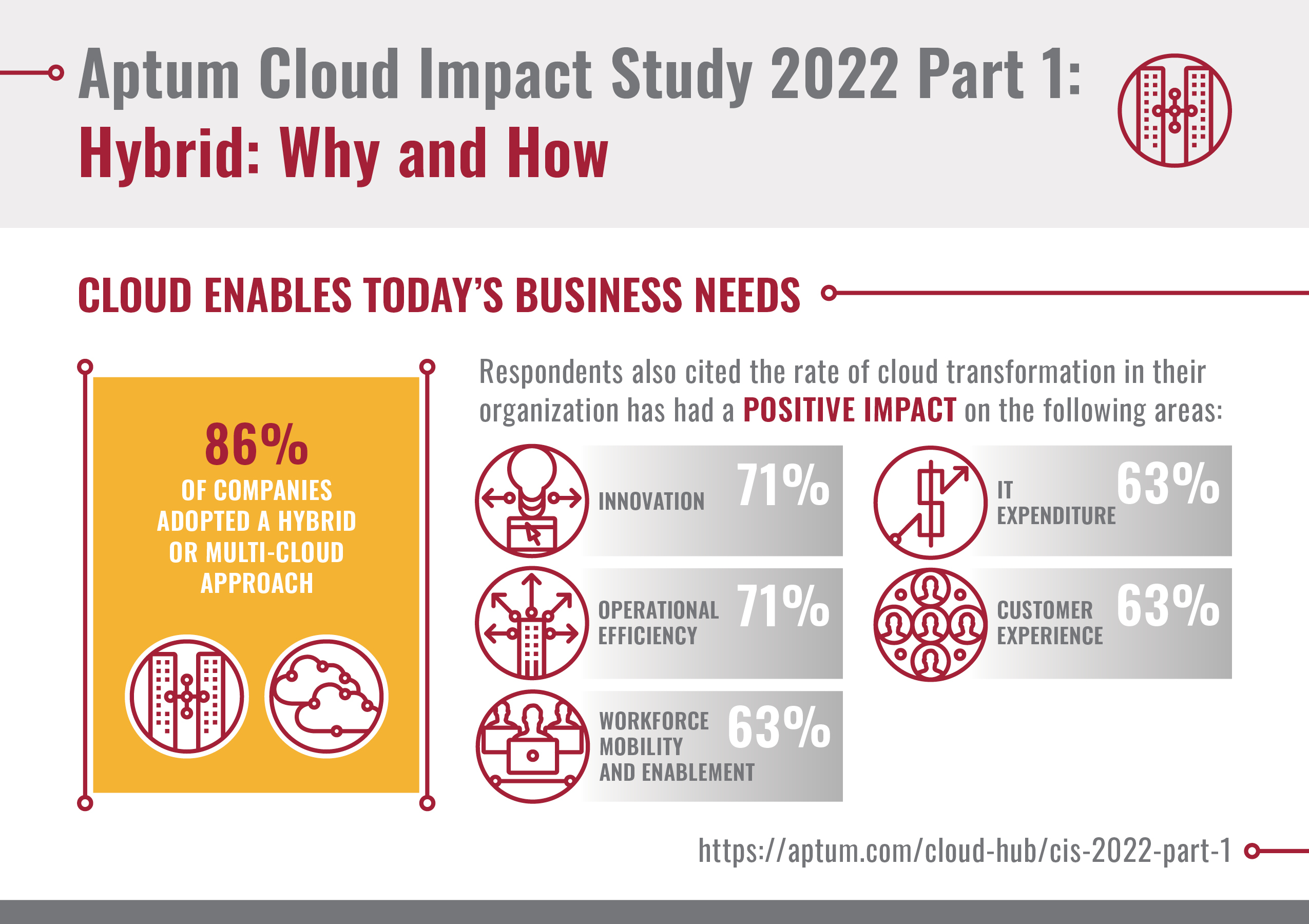 TORONTO--(BUSINESS WIRE)--Aptum, a hybrid multi-cloud managed service provider, today released part one of its annual Cloud Impact Study 2022. The report, titled Hybrid: Why and How – Applying lessons from digital transformation, explores the deployment of workloads on different cloud infrastructures and examines the decision-making process behind their placement.