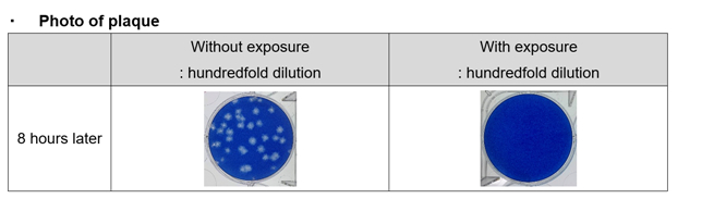 Pierwsze na świecie*1 potwierdzenie hamującego działania cząsteczek nanoe™ firmy Panasonic (naładowanych elektrostatycznie, zatomizowanych nanocząsteczek wody) na osadzone na powierzchni nowe koronawirusy w przestrzeni testowej o kubaturze 24 m3
