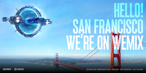 Wemade has unveiled its first key visual, WEMIX mother ship, which symbolizes the global blockchain platform, WEMIX. In the key visual, the ‘HELLO! SAN FRANCISCO WE’RE ON WEMIX’ slogan and Wemade’s mother ship engraved with WEMIX and Wemade appear over the Golden Gate Bridge in San Francisco. Wemade is heading to San Francisco to participate in the world’s largest developers conference, GDC (Game Developers Conference). It is planning to introduce the global blockchain platform, WEMIX, to developers around the world. (Graphic: Business Wire)
