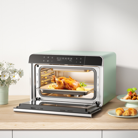 The R-Box Combi Steam Oven utilizes Professional Vortex Cyclone technology, powered by a dual-speed motor and double-ring heating tube, to create stable temperatures and ensure that food is heated evenly while retaining nutrients. In addition to standalone functions, such as baking and grilling, the appliance offers powerful multi-stage capabilities as well, such as steam baking and steam roasting, to provide home cooks with more precise control over the cooking process. To ensure no heat escapes during the cooking process, the unit is equipped with three layers of glass. In addition to conventional cooking functions, the unit’s additional modes include ferment, clean, sterilize, defrost, warm, dry and descale.