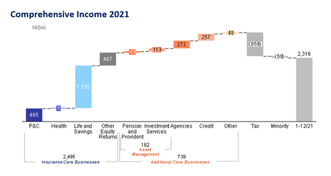 Cash dividends from 2021 earnings total 621 million NIS, which is 2.47 NIS per share (421 million NIS will be distributed in April, 2022, in addition to 200 million NIS already distributed in December 2021); Phoenix also repurchased shares in the amount of 74 million NIS