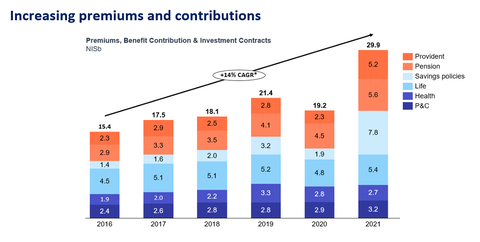 Total managed assets at the end of 2021 amounted 369 billion NIS, compared with 234 billion NIS at the end of 2020. Total premiums and benefit contributions amounted to 29.9 billion NIS in 2021, compared with 19.2 billion NIS in 2020