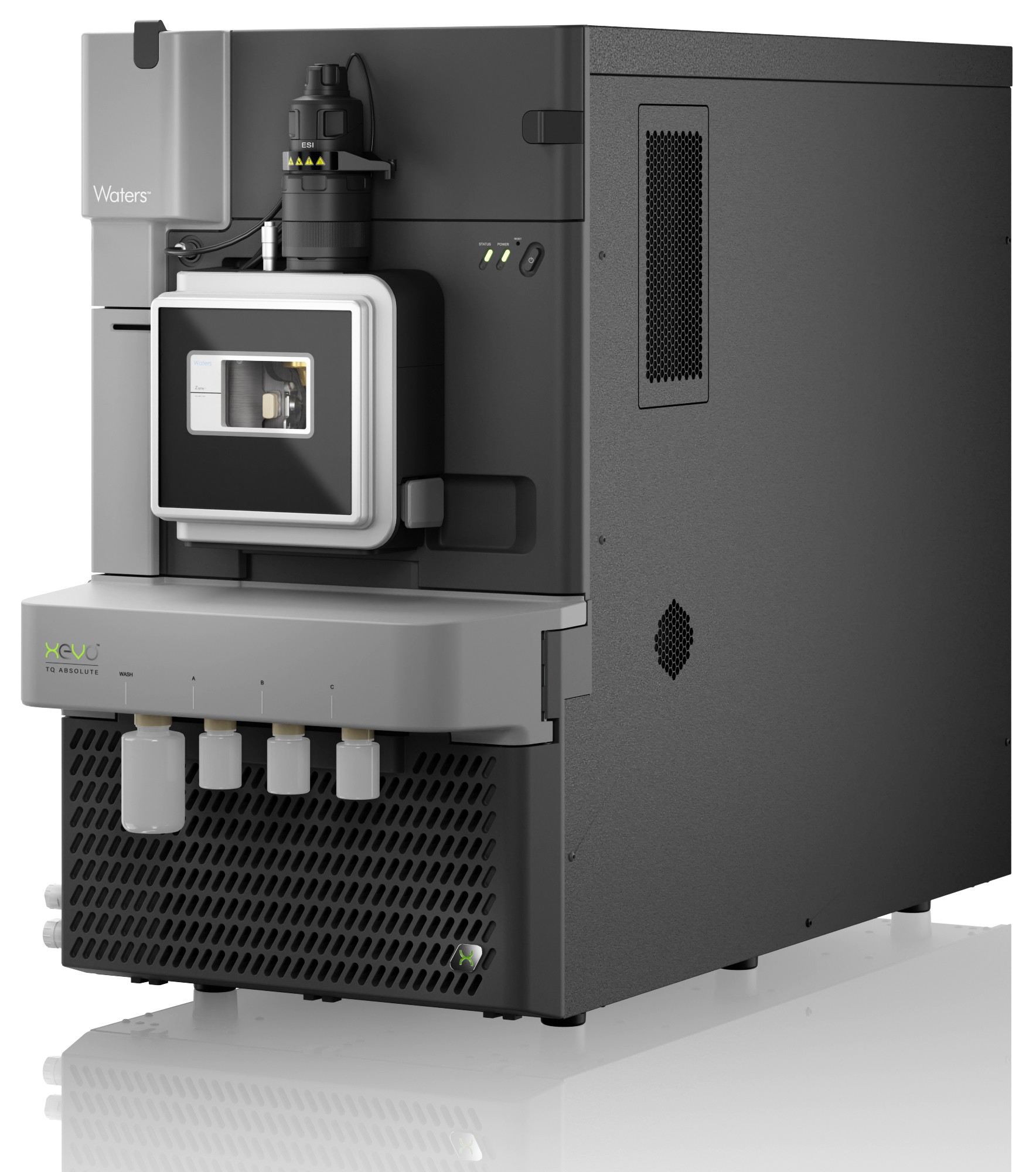 - Xevo TQ Absolute es hasta un 45 % más pequeño, utiliza hasta un 50 % menos de energía y nitrógeno y genera hasta un 50 % menos de calor que los espectrómetros de masas de cuadrupolo en tándem de la competencia