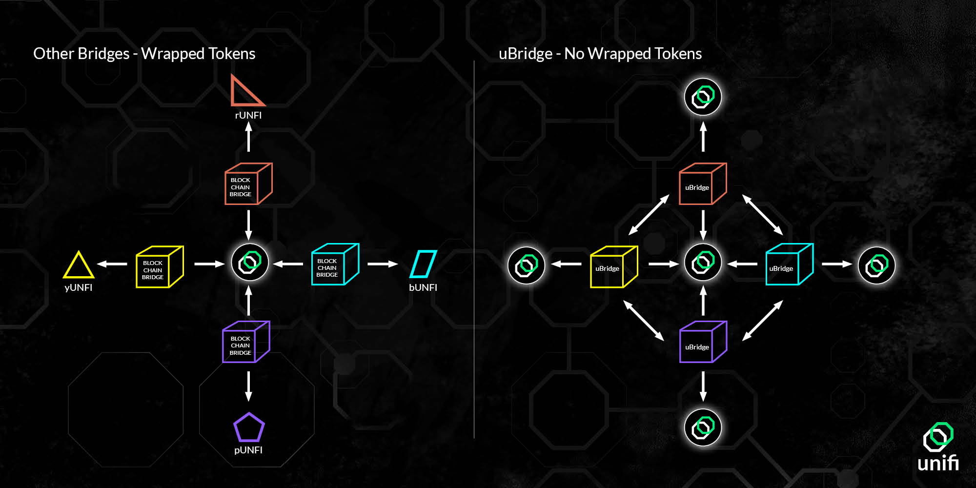 uBridge avoids this issue by bridging authentic UNFI tokens only, giving users an added layer of security as compared to traditional bridges. An added benefit to uBridge is the unique ability to transfer your tokens to and from any combination of supported blockchains in a cost-efficient manner.