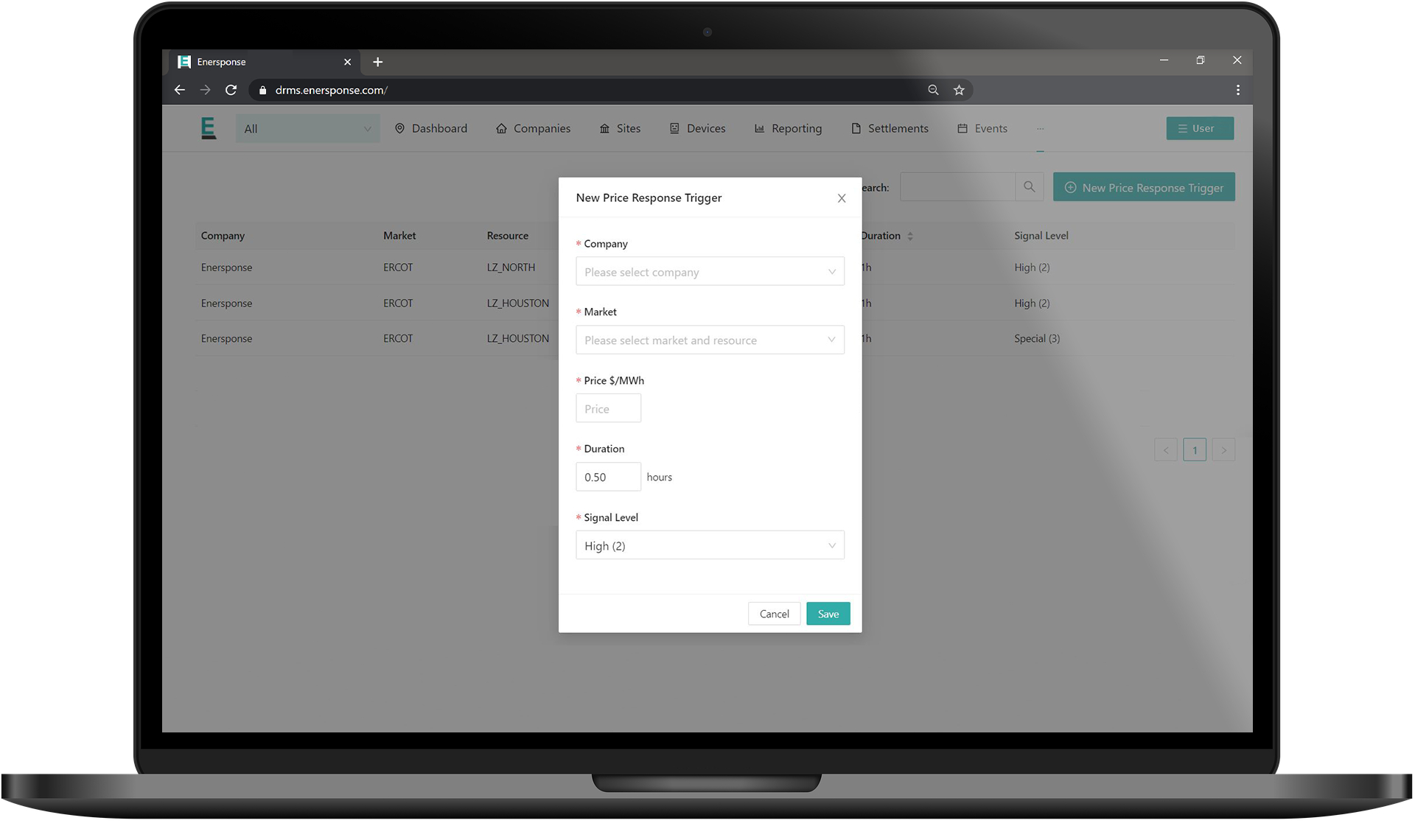 Price Response enables users to set a price cap within the Enersponse’s DERMS platform that triggers building management and on-site SCADA systems to reduce consumption when the cost of electricity exceeds the pre-determined threshold. Price Response allows customers to save more on their utility bills by capping wholesale index exposure and by allowing clients to change the way their fixed versus index plan is structured with their retail energy provider.