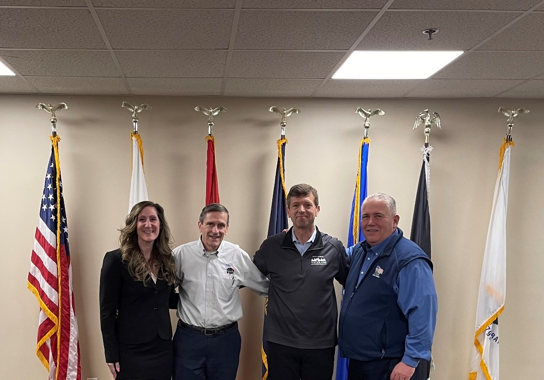 From left to right: Brenda A. Heller, United States Army veteran and Public Relations and Philanthropy Manager, Saint-Gobain, North America; Bill Ivey, United States Army veteran, Retired and Executive Director of HFOT; Michael Rosenblatt, United States Navy veteran and Vice President of Operations for CertainTeed Roofing; and Chris Mitchell, Director of Development of HFOT. (Photo: Business Wire)