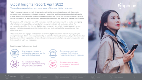 在谈到报告中与新冠疫情相关的趋势时,益博睿全球决策分析战略和运营执行副总裁David Bernard表示:“我们的最新调查结果显示,虽然消费者关心的主要问题因地区而异,但与一年前相比,现在许多消费者更关心网上交易和活动的安全性。过去两年间,消费者对数字技术的运用愈加熟练,对先进的、无摩擦的安全方法有了越来越多的认识和理解。消费者希望让自己的工作和生活更加便捷和安全。”