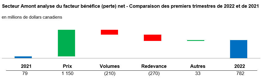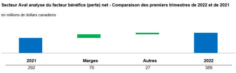- Le bénéfice net a été de 1 173 millions de dollars, ou 1,75 dollar par action sur une base diluée, les chiffres les plus élevés pour un premier trimestre en plus de 30 ans, en hausse par rapport aux 392 millions de dollars, ou 0,53 dollar par action, au premier trimestre de 2021. Cette amélioration du bénéfice net est principalement attribuable à une conjoncture favorable.