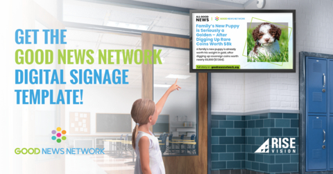 Launching this month in over 120 schools, Rise Vision and Good News Network (GNN) are spreading positivity with uplifting news content on video screens for grades K-12. Now, students and teachers can stop and read about kindness and scientific breakthroughs on new templates created by Rise Vision.