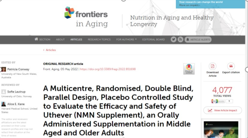 Op 5 mei 2022 publiceerde Frontiers in Aging, een gezaghebbend internationaal tijdschrift over verouderingsmechanismen, een NMN klinisch onderzoeksrapport met nieuwe inzichten en meer ervaring op het gebied van een lang leven.