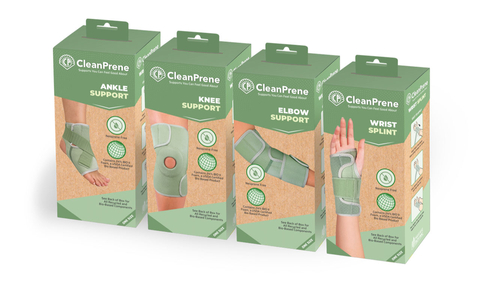 CleanPrene’s four over-the-counter splints products are available in knee, wrist, elbow, and ankle varieties; each option is lighter, great for sensitive skin and is machine washable for long lasting use.
