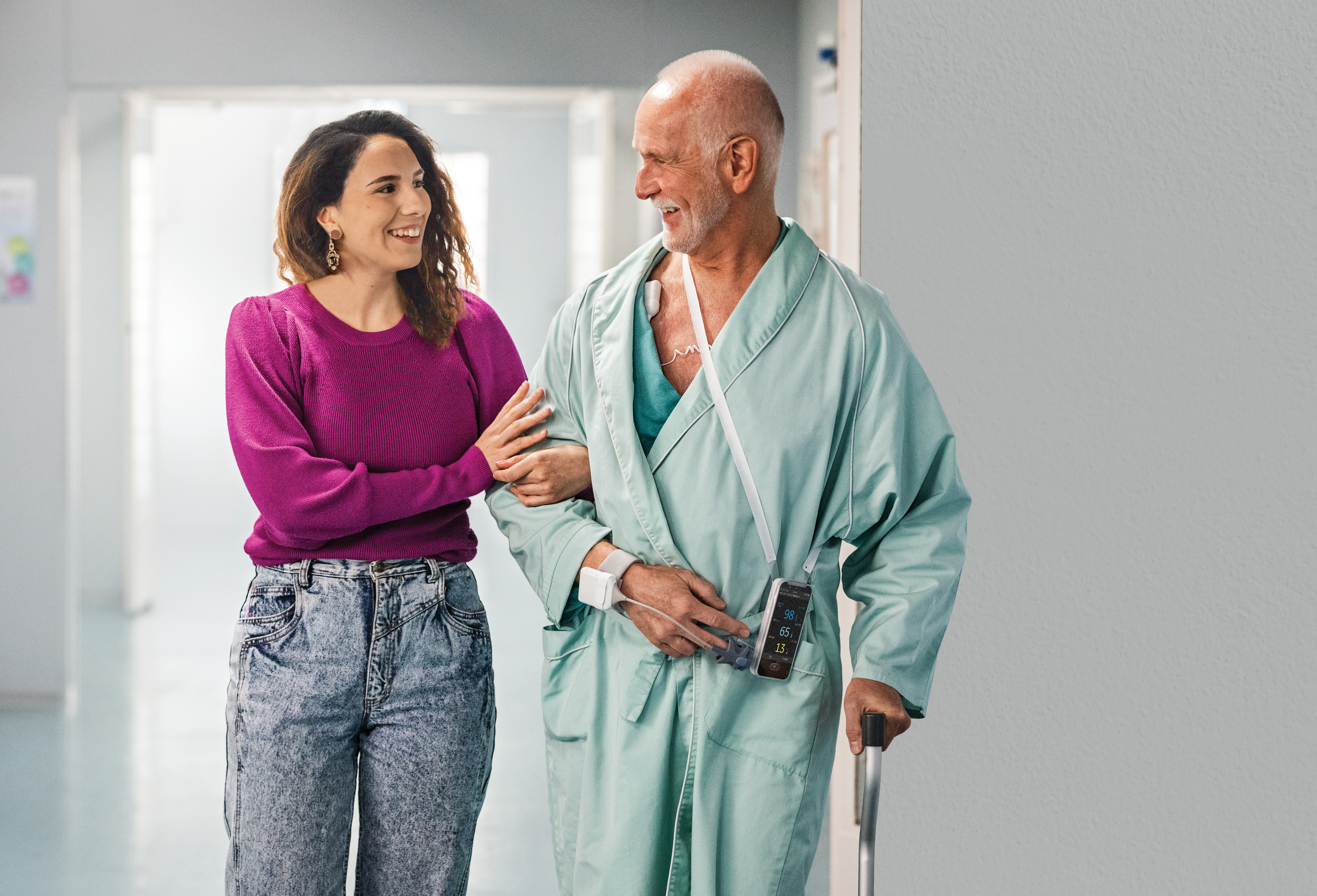 - La monitorización inalámbrica permite una movilización más temprana del paciente, un indicador clave para la recuperación, especialmente en el postoperatorio2.
