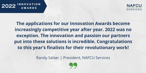 “The applications for our Innovation Awards become increasingly competitive year after year. 2022 was no exception,” says President of NAFCU Services, Randy Salser. “The innovation and passion our partners put into these solutions is incredible. Congratulations to this year’s finalists for their revolutionary work!”