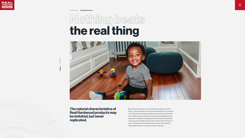 Designed by CANVAS United—a high-profile agency known for its exceptional creativity, impressive project portfolio, and extensive experience in promoting commodity and agricultural goods—the website educates consumers on the advantages and benefits of Real American Hardwood products in ways that make emotional connections. Interactive site modules engage consumers and compare the appearance, durability, value, home health, and environmental attributes of real wood products to faux, wood-look alternatives. The site also serves as a hub for project inspiration, maintenance tips, and environmental facts, and explores how hardwood is influencing lifestyles and culture in the modern world.