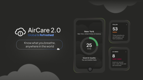 Today’s new AirCare 2.0, a refreshed approach to tracking air quality, is launching all around the world. Those wanting to track what they breathe will get: