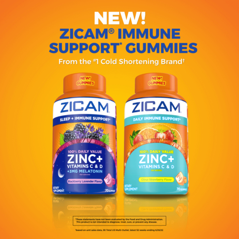 EWING, N.J.--(BUSINESS WIRE)--Zicam®, the #1 cold-shortening brand†, announces the launch of two new immune support gummy supplements – Zicam Daily Immune Support* and Zicam Sleep + Immune Support* with Melatonin – developed to provide immune support year-round, day and night.*