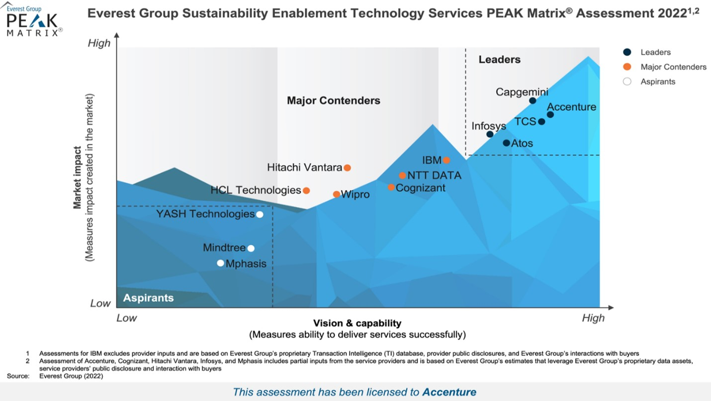 Accenture’s strong partnership ecosystem and acquisition strategy are underscored in Everest Group’s report, noting that recent sustainability focused acquisitions, such as akzente, Avieco and Greenfish are helping enable Accenture to expand capabilities across geographies, industries and the sustainability value chain. Everest Group also emphasizes Accenture’s deep talent pool of sustainability specialists and highlights the company’s focus on deploying artificial intelligence for ESG analytics.