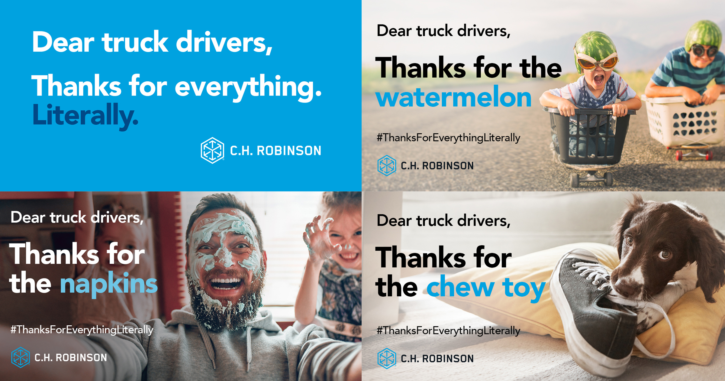 La celebración, de dos semanas de duración, incluye $100.000 en regalos directamente para los conductores de camiones en reconocimiento por las 100.000 millas en promedio que recorren cada año. También recomienda a las personas en todo el mundo a compartir sus propias notas de agradecimiento en las redes sociales. Por cada mensaje de agradecimiento que se publique usando el #GraciasPorTodoLiteralmente en Facebook, Twitter, LinkedIn o Instagram, la Fundación C.H. Robinson donará $5, hasta $25.000, al Fondo de Ayuda a los Conductores de Camiones de San Cristóbal, que ayuda a los conductores de camiones necesitados. C.H. Robinson también regalará $1.000 diez veces al día, cada día laborable, del 11 al 23 de septiembre a los transportistas que entren reservando y recogiendo cargas de C.H. Robinson.*