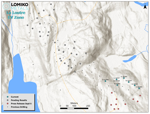 Le programme de forage à La Loutre a été lancé le 15 mai 2022, dans le but de mieux définir le gisement, de fournir les données nécessaires pour accroître la confiance dans la ressource minérale et de s'appuyer sur les résultats de l'évaluation économique préliminaire positive pour le projet La Loutre, comme annoncé dans le communiqué de presse de la société du 29 juillet 2021. Lomiko a retenu les services d'InnovExplo, une société de conseil indépendante basée au Québec spécialisée dans la géologie, en estimation des ressources, en génie minier et le développement durable, pour préparer une mise à jour de l'estimation des ressources conforme à la norme NI 43-101 pour le projet La Loutre après l'achèvement du programme de forage 2022. Le programme de forage initial prévoyait jusqu'à 18 000 mètres dans les deux zones ; la réception tardive du permis en mai, ainsi que les conditions environnementales du printemps et de l'été, ont entraîné l'achèvement de 13 113 mètres.
