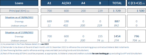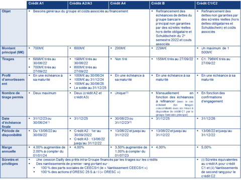 | (*) hors programme d'affacturage tiré à hauteur de 128 M€ au 30 juin 2022 et hors frais d'émissions pour 46 M€. Remboursement des tirages des RCF aligné avec les dates de maturité finale des lignes de crédit concernées | |||||||