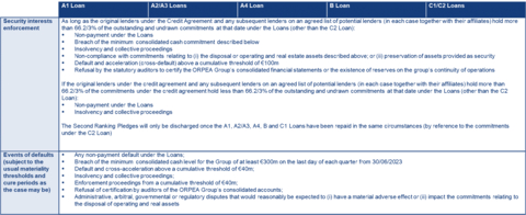 (2) Tirage conditionné notamment à la remise d’un Memorandum Of Understanding relatif à la cession d’actifs immobiliers pour 200M€ (le « MoU »).