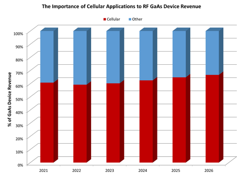 “The RF GaAs device market has been pretty impervious to the forces affecting global economies the past few years,” noted Eric Higham Director of the Advanced Semiconductor Applications (ASA) and Advanced Defense System (ADS) service. “GaAs device revenue ties so strongly to the cellular market and the uptake of 5G with more RF content has powered revenue growth these past two years.” He went on to say, “However, we now see substantial softening of handset demand in 2022 that will cause RF GaAs device revenue to drop in 2022. Fortunately, the underlying growth trends remain strong and as inflation subsides and global economies get back to growth, RF GaAs device revenue will turn upward.”