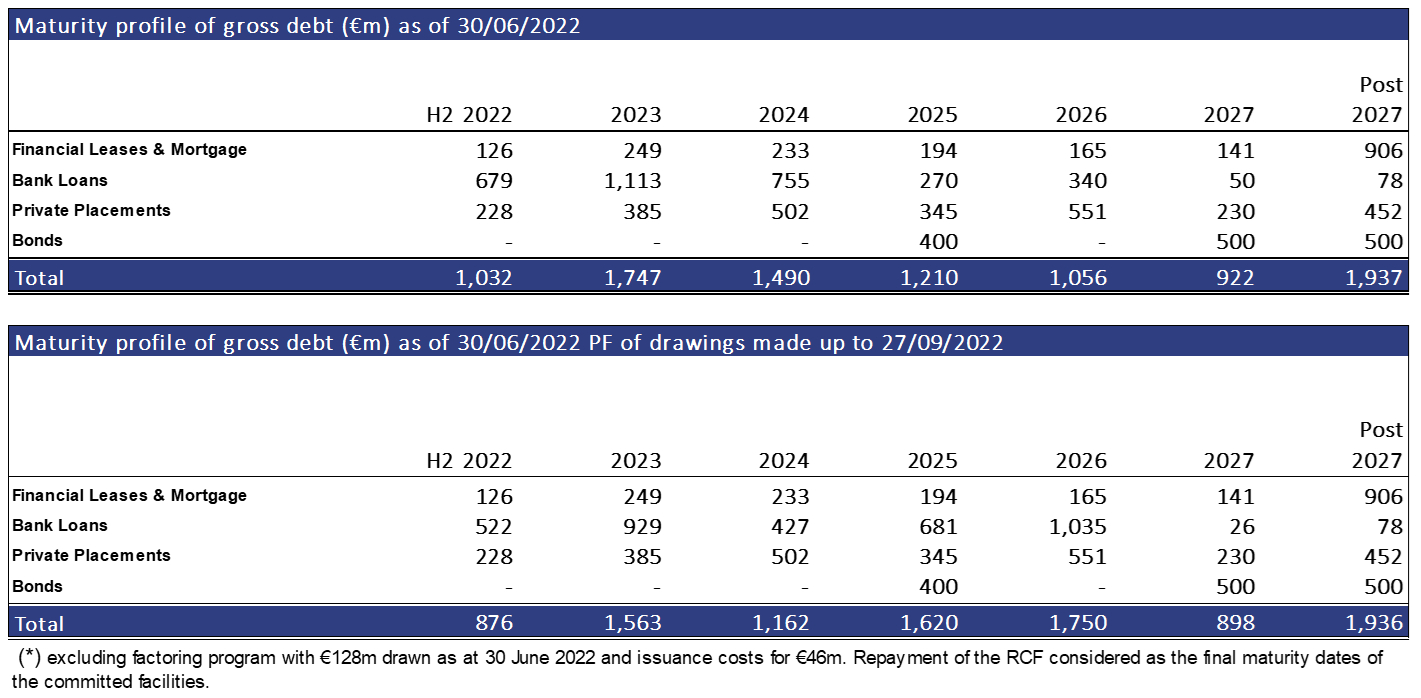 The gross financial debt maturity profile, as published on 28 September 2022, is set forth in Appendix 1 of this press release.