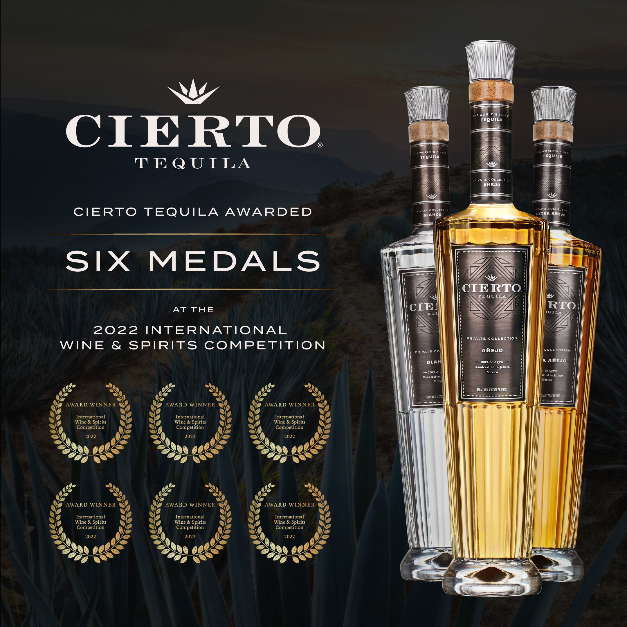 Cierto Tequila Awarded Six Medals at the 2022 International Wine & Spirits Competition