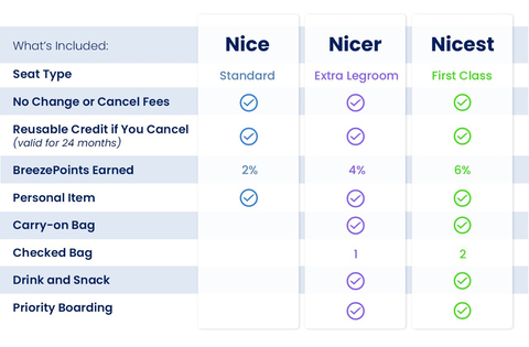 -- Provides all the perks of ‘Nicest’, including First Class seat and Two Checked Bags, for only $5 More than ‘Nicer’ --