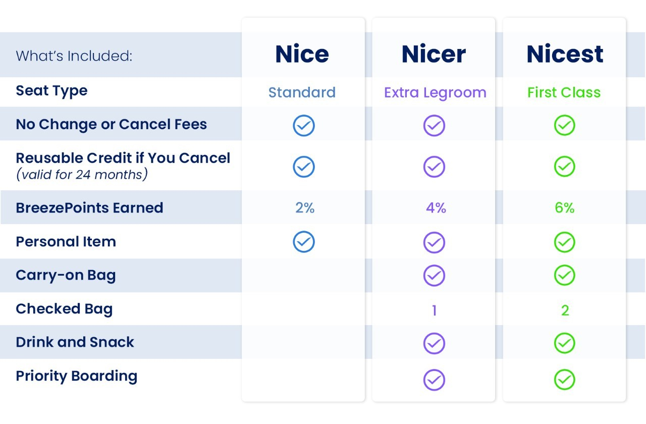 “Just as you can layer on coats, hats and scarves for the winter, our model allows Guests to add on options or select an all-inclusive bundle that best meets their needs,” said Breeze President, Tom Doxey. “The ‘Nicest’ bundle is available exclusively on our brand-new Airbus A220 aircraft and is in a class of its own, providing a comfortable and affordable experience on both long and short trips.” The ‘Nicest’ bundle is only available on flights operated with an Airbus A220-300 and includes a First Class-style seat in a two-by-two configuration.