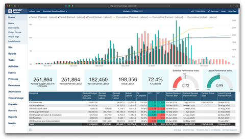 Com uma linha de visão clara e diária para o gerenciamento de todos os recursos do local, desde pessoal, terceirizados e equipamentos, o SYNCHRO Perform preenche as lacunas entre os ciclos de relatórios financeiros de fim de mês. E com a liderança do projeto potencialmente em desvantagem quando se trata de tomada de decisões, devido a atrasos na captura do progresso e erros na entrada de dados, o SYNCHRO Perform fornece uma fonte oportuna de verdade para todos os dados e métricas de gerenciamento de desempenho, para que a liderança do projeto saiba a condição de cada projeto. Características específicas da construção capturam quantidades diárias de progresso, diários, eventos não planejados, apontamentos, passagens e custos estimados do pessoal de campo, fornecendo à liderança os dados oportunos que precisam para tomar decisões informadas.