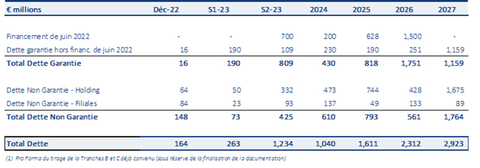 La structure de la dette du Groupe au 30 novembre 2022, en tenant compte des tirages sur les Tranches B et C déjà convenus (sous réserve de la finalisation de la documentation) serait la suivante :