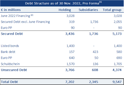 En excluant tout nouveau financement et le tirage des 200 millions d'euros sur la tranche A4 du crédit syndiqué de juin 2022, et à partir d'une position de trésorerie estimée à 831 millions d'euros (chiffres non audités) au 2 novembre 2022, le Groupe est exposé à un risque de manque de liquidité au cours du premier trimestre 2023 (même en tenant compte de la suspension de l'amortissement du principal de sa dette non garantie mentionnée au dernier paragraphe ci-dessous). Le Groupe a entamé des discussions avec certains de ses principaux créanciers afin d’obtenir des liquidités supplémentaires d'ici là et lance aujourd'hui un processus avec les créanciers existants et des investisseurs tiers pour lever de nouvelles dettes supplémentaires garanties par des actifs immobiliers, afin de couvrir ses besoins de financement jusqu'à la fin du premier semestre 2023, qu'il estime à 800 millions d'euros au total (ou 600 millions d'euros en supposant un tirage de 200 millions d'euros sur la tranche A45 ).