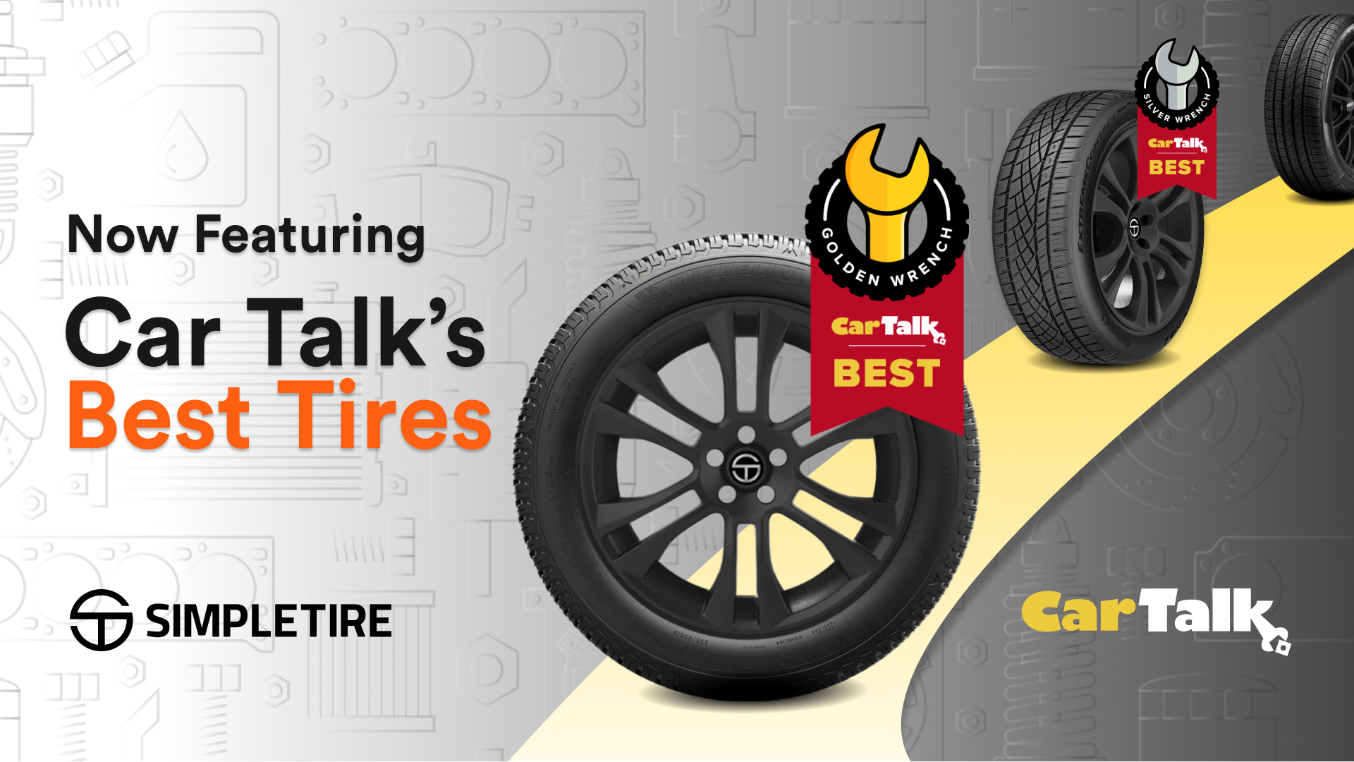 BENSALEM, Pa.--(BUSINESS WIRE)--Forwarding its commitment to creating a “way simple, way better” tire replacement experience, SimpleTire is the first online tire retailer to feature Car Talk’s Golden, Silver, and Bronze Wrench Awards for excellence in the tires space on its website. SimpleTire carries thousands of tires from over 300 tire brands, offering expertise, insights and tips to help customers make confident tire-buying decisions. Car Talk’s tire ratings will highlight tires awarded for excellence across the All Season, Performance, Truck, Car/Sedan, SUV/Crossover, Minivan, and Winter categories.