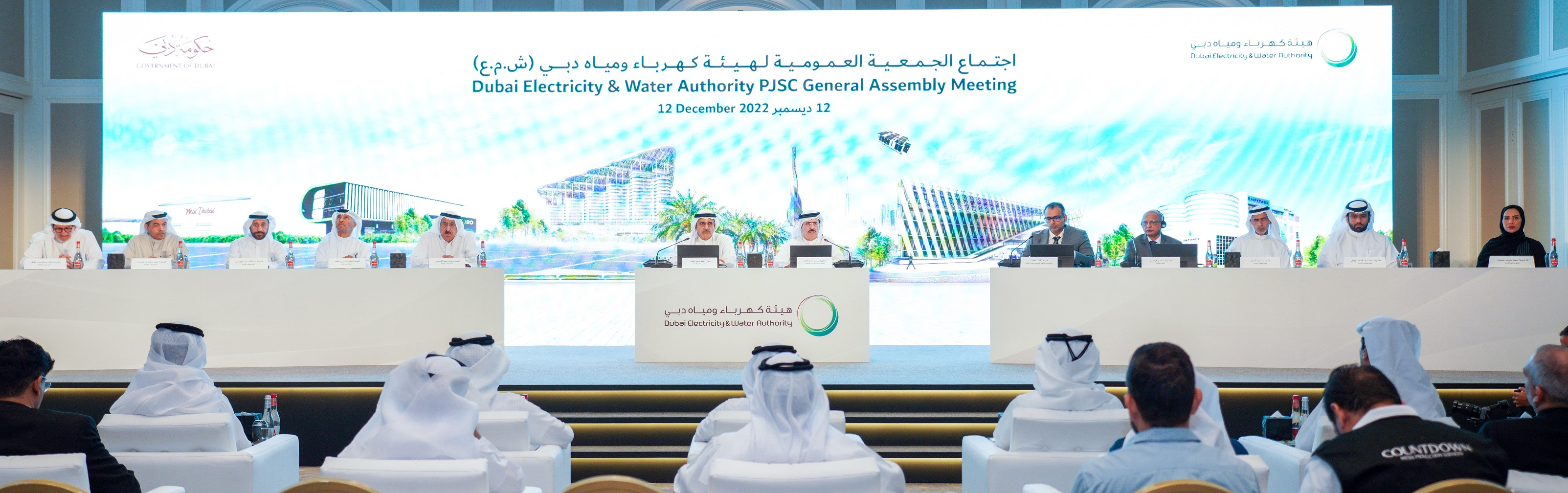 All'incontro, presieduto da HE Matar Humaid Al Tayer, Presidente del Consiglio di Amministrazione di DEWA, hanno partecipato HE Saeed Mohammed Al Tayer, MD&CEO di DEWA, i membri del Consiglio di Amministrazione di DEWA e l'89,43% degli azionisti".