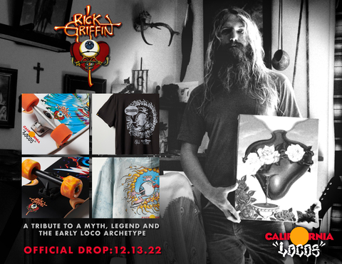 LOS ANGELES--(BUSINESS WIRE)--A limited collection of CALIFORNIA LOCOS x Rick Griffin numbered skateboards and accessories launches today at 11 a.m. PST. Curated by Creative Director Nano Nóbrega, this collection features high-performance street, retro, and cruiser skateboards, t-shirts, and surf ponchos. The skateboards are sold as completes or single decks. The single decks are treated as collectible pieces of art. With only 150 units produced of each style, these boards come with custom artist boxes, wall mount hangers by SK8OLOGY, and a certificate of authenticity signed by CALIFORNIA LOCOS Founder Dave Tourjé, Griffin’s wife, Ida Griffin, and Creative Director Nano Nóbrega. Legendary artist Rick Griffin profoundly influenced the parallel worlds of surf and rock impacting everything from graffiti to graphics to fine art. Griffin is considered an “Original Loco” and a true SoCal archetype. CALIFORNIA LOCOS is proud to present the Rick Griffin collection as a tribute to one of SoCal’s greatest. See the entire collection here: https://californialocos.com/collections