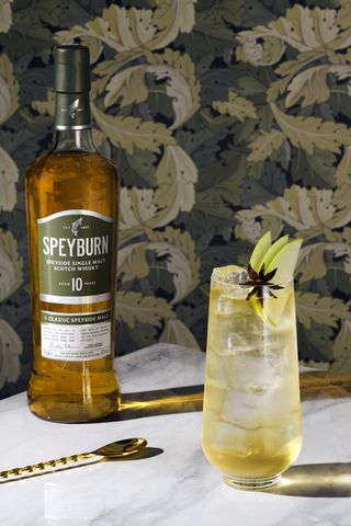 Add Speyburn 10 Year Old, cordial and bitters to a highball glass with good quality ice cubes and top with Champagne. Add two dashes of Angostura Bitters to add complexity and complement the flavors. Garnish with an apple slice, or star anise if you want a touch of theatre!