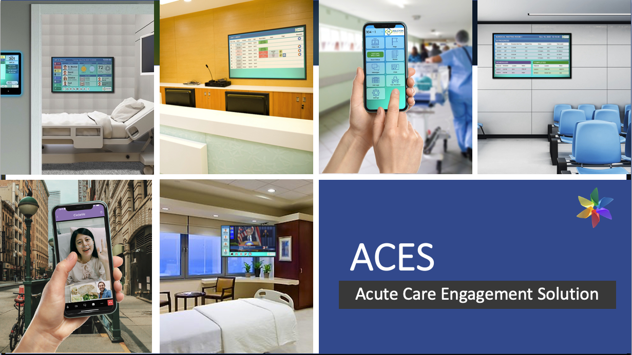 “We are very proud of what we have accomplished so far in the acute care (hospital) space, but this is just the beginning,” says co-founder and CTO Richard Schramm. “Instead of trying to force-fit functionality into an existing TV management or patient engagement solution, we started with a blank slate. We focused first on developing a secure, scalable, and high-availability platform, that could receive and process real-time data from various systems, and securely deliver it to those who need it, when and where they need it. Then we developed ACES product to make that data visible on interactive touchscreen ‘smartboards’ that would eliminate dry-erase boards and door placards at the room, and census boards at the nurse station. Then we added mobile apps for the clinicians, the patients, and the patient’s loved ones to bring everyone into the loop.”