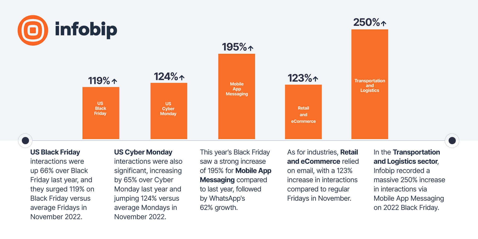 - Infobip sees year-on-year growth for both Black Friday and Cyber Monday recording 2.36 billion and 2.12 billion interactions respectively on its platform