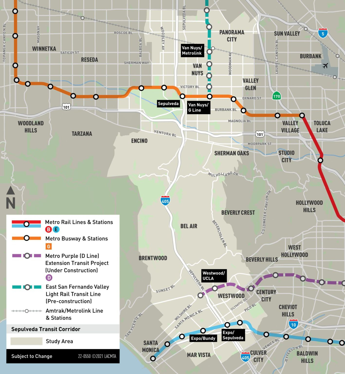 Metro is planning to improve travel between the San Fernando Valley and westside of Los Angeles, with future expansion to the Los Angeles International Airport (LAX). Interstate 405 between these high-demand areas is one of the most congested urban freeway corridors in the United States, with more than 400,000 daily trips crossing the Sepulveda Pass through the Santa Monica mountains every weekday.