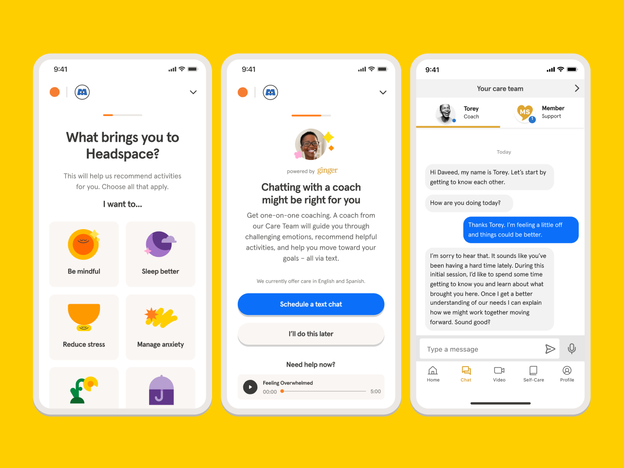 - Self-Guided Care: On-demand, self-guided activities through the Headspace app to build proactive skills and enhance everyday wellbeing. Employees can access more than 1,000 hours of mindfulness content from evidence-based guided meditations, eyes-open exercises like mindful walks and runs, breathing and wind-down exercises, focus music, sleep content and more.