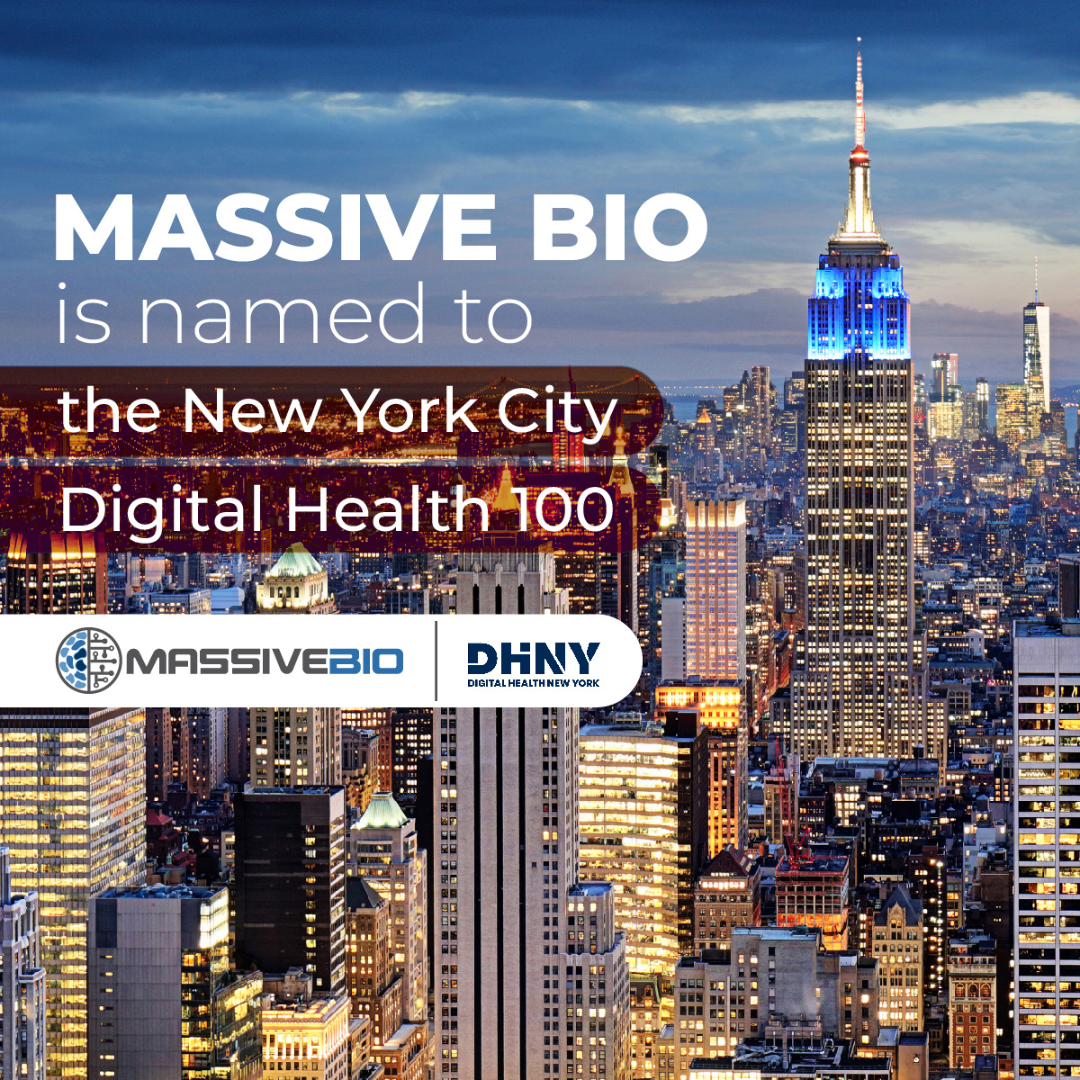 NEW YORK--(BUSINESS WIRE)--Massive Bio, a leader in the use of artificial intelligence (AI) to match cancer patients to clinical trials, is honored to announce that it has been named to the New York Digital Health 100 (DH100) for the second consecutive year. The DH100, which is published annually by Digital Health New York (DHNY), showcases the most exciting and innovative health start-ups in the New York region and is featured in the New York Healthcare Innovation Report 2023. Published for the sixth time this year, the report is an in-depth look at the leaders, trends, and data that are shaping healthcare innovation in New York. DHNY’s stated goal is to “create a connected community that shares ideas, leads in new directions, and builds success for the entire healthcare ecosystem.”