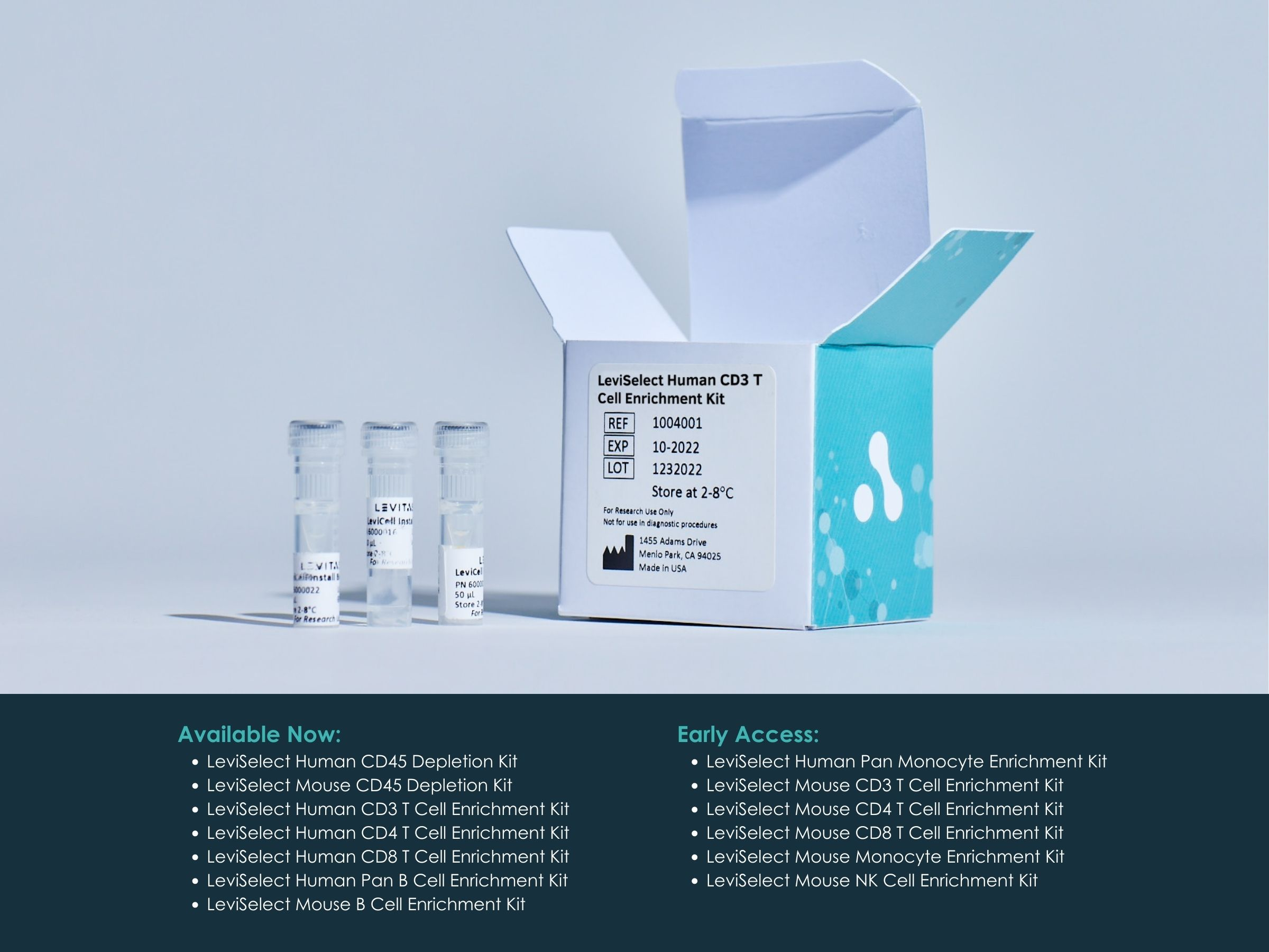 MENLO PARK, Calif.--(BUSINESS WIRE)--LevitasBio, Inc. (www.levitasbio.com), een vooraanstaande leverancier van end-to-end monsterverwerking en cellulaire analyse voor de biowetenschappelijke markt, onthult een reeks LeviSelect™-kits voor celdepletie en -verrijking voor immunologisch onderzoek.