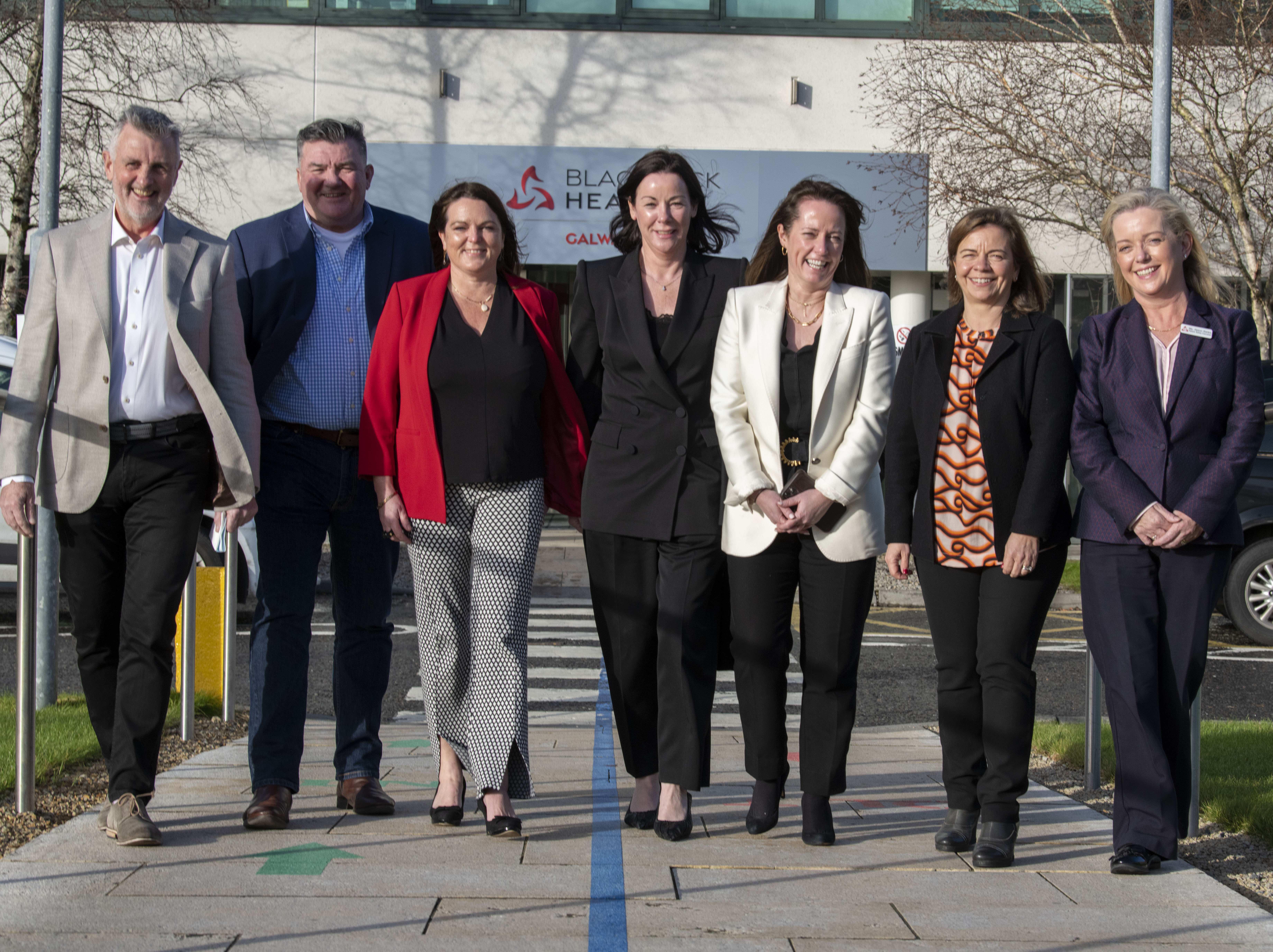From left to right: Prof. Frank Sullivan, CMO WHYZE Health and Director Radiation Oncology, Prostate Cancer Institute (NUIG) Blackrock Health, Galway Clinic; Phil Blackwell, Chief Technology Officer, WHYZE Health; Dr. Tanya Mulcahy, Director, Health Innovation Hub Ireland; Frances Abeton CEO, WHYZE Health; Evelyn Smyth, Interim CEO, Galway Clinic; Abby Langtry, Chief Patient Officer, WHYZE Health; Alyson Banks, Patient Safety Executive, Galway Clinic (Photo: Business Wire)